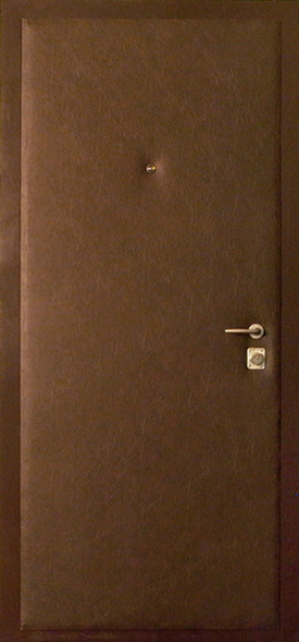 Отделка двери. Для отделки дверей эконом-класса используется порошково-полимерное напыление, винилискожа с различными вариантами обивки, ламинат. Эти материалы можно использовать в различных сочетаниях как с внешней, так и с внутренней стороны двери. Преимущества этих видов отделки - большое разнообразие цветов и простора в уходе. Такие двери легко моются. Минусы - если порошково-полимерное покрытие имеет хорошие антивандальные свойства, и поцарапать его очень непросто, то дверь, декорированную винилискожей порезать очень легко. Выбирая отделку важно помнить правило: материалы, пригодные для эксплуатации в условиях улицы можно использовать для отделки квартирных дверей, наоборот - ни в коем случае нельзя.