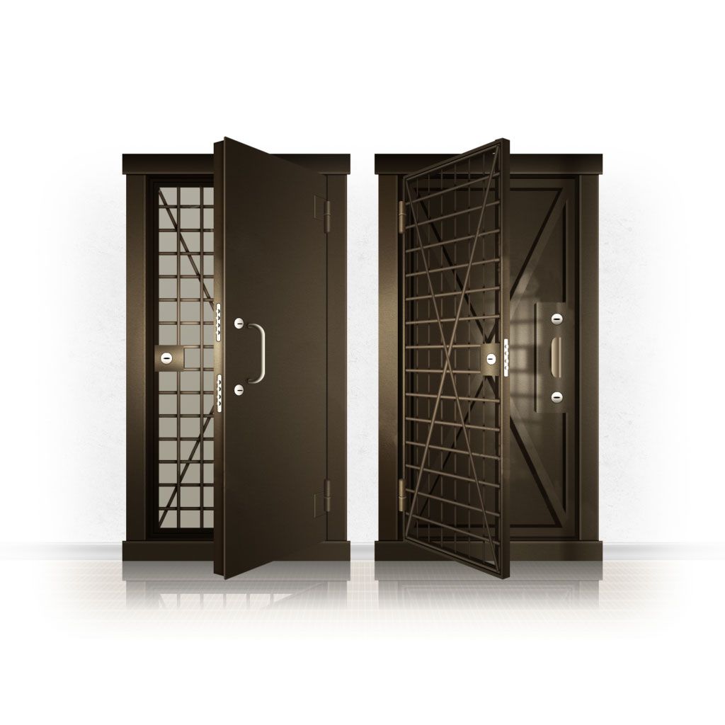 Металлические двери КХО и КХН представляют собой входные блоки, обладающие высоким уровнем взломостойкости и состоят из трех основных элементов: усиленного каркаса, сплошного металлического полотна и решетчатой двери. Дверной блок изготавливается из стального уголка 100*100 мм. Места крепления блока к стене цементируются и закрываются стальными наличниками шириной 40 мм. Крепеж заходит вглубь стены на 80 мм. В конструкции внешней створки монтируются ребра жесткости, для обшивки используется сталь толщиной не менее 3 мм. Внутренняя решетка изготавливается из прутка диаметром 16 мм. Размер ячеек решетки должен составлять не более 15 на 15 см. В точках пересечения прутья надежно приваривают друг к другу. В КХО и КХН необходимо поддерживать определенную температуру и влажность. Для этого внутреннее пространство глухой двери заполняется теплоизоляционным материалом, а по периметру двери приклеивается уплотнитель. Такие двери оборудуются замками с повышенным уровнем взломостойкости. Специализированные двери КХО и КХН в Аксае могут быть оснащены сигнализацией, в конструкции могут быть проушины для навесного замка и элементами для опечатывания. Если идет речь о двери в комнату хранения оружия, в створке оборудуется окно для выдачи оружия и спец. средств, которое накрывается стальной дверцей.