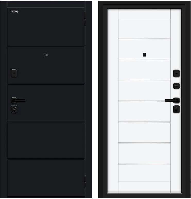 Надежная входная Дверь Браво Прайм/SBlack-Black Shell/White Silk премиум класса по цене 39 999 руб. Большая толщина стали защитит от проникновения в ваш дом, квартиру или коттедж. Используется очень качественная фурнитура: замки, цилиндры, ручки, защелки. Покрытие и отделка двери изготовлено под внимательным контролем производителя. Дверь имеет долгий срок службы и гарантию.